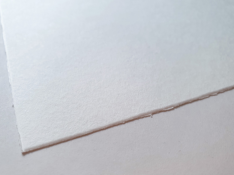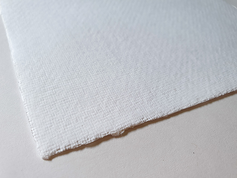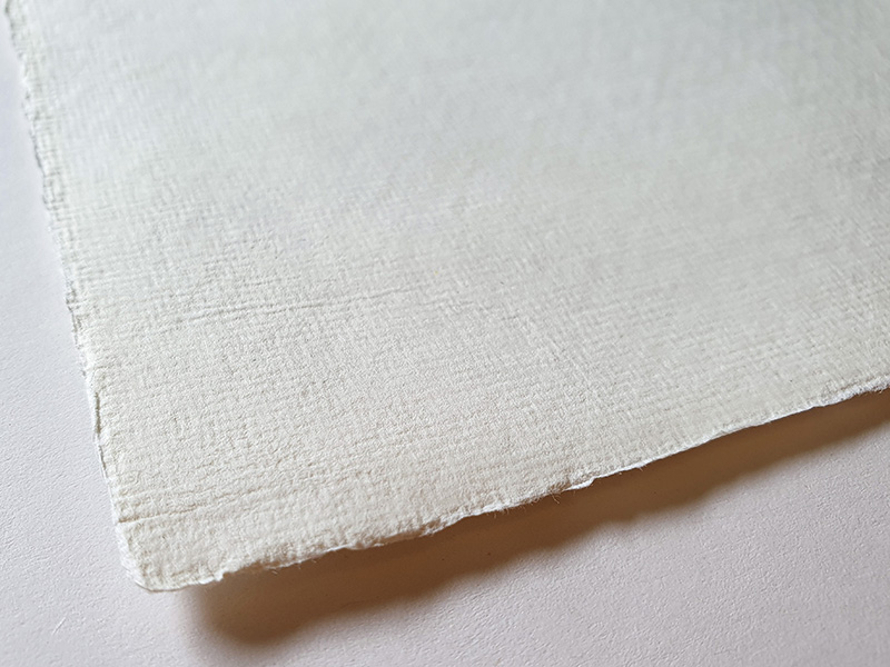 Deze gebroken witte papiersoort van circa 300 gram wordt met de hand vervaardigd, waardoor elk velletje uniek is in vorm, dikte en structuur. Een prachtige, ambachtelijke keuze met een natuurlijke uitstraling.
