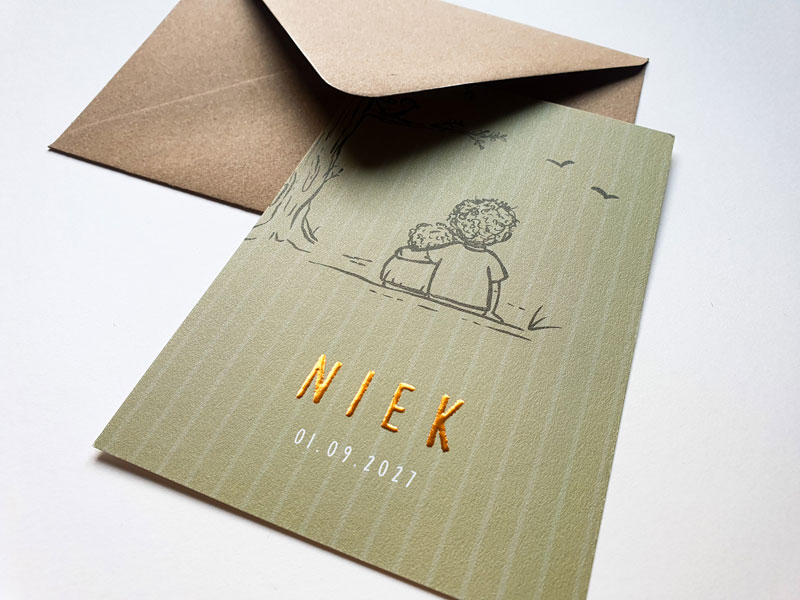 Of je nu gaat voor een modern minimalistisch ontwerp met lijntekening of een klassiek kaartje met bloemen en illustraties – foliedruk geeft het geboortekaartje nét dat beetje extra.